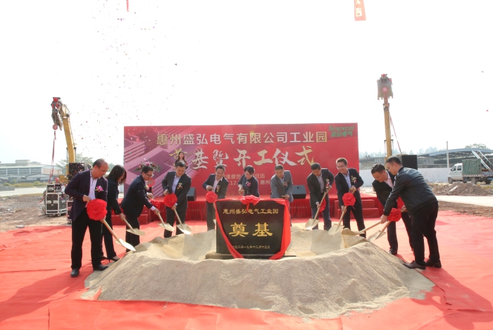 ? ? 2019年12月13日上午,由我司承建的“惠州市盛弘電氣工業(yè)園”項(xiàng)目奠基暨開工儀式在惠環(huán)街道隆重舉行。我司陳小勇董事長(zhǎng)、總經(jīng)理及參建相關(guān)單位領(lǐng)導(dǎo)、嘉賓出席該項(xiàng)目開工儀式并為項(xiàng)目揮鏟奠基培土。