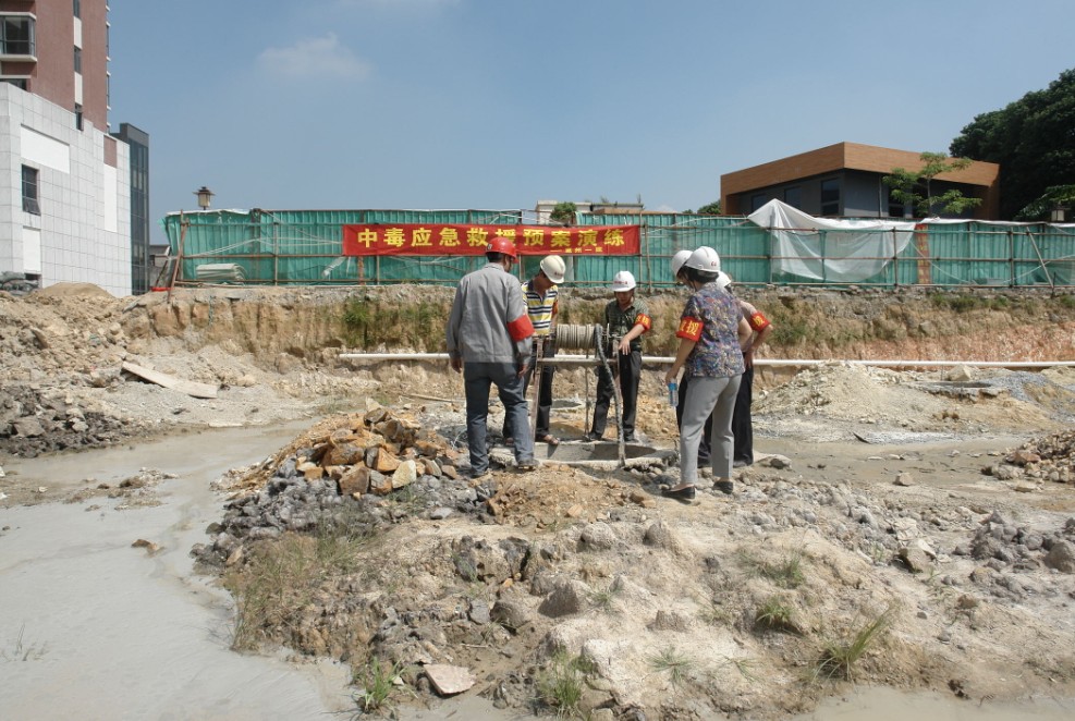 項目部救援小組成員發(fā)現現場施工人員中毒,120醫(yī)務人員及項目部救援小組趕到現場將傷者送往醫(yī)院救治