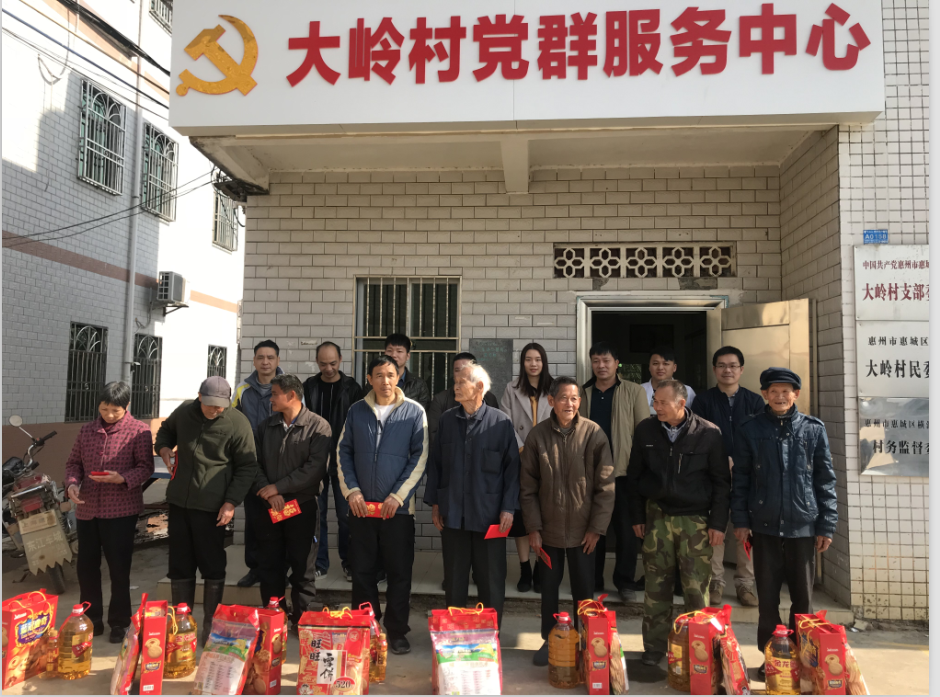 ? ? 2019年1月23日上午,為積極響應(yīng)惠城區(qū)“兩新”黨組織和經(jīng)濟(jì)薄弱村黨組織結(jié)對(duì)共建活動(dòng)。受我司陳小勇董事長(zhǎng)、總經(jīng)理委托,謝靜儀總經(jīng)理助理及公司相關(guān)人員與惠城區(qū)企業(yè)管理局黨建指導(dǎo)員溫奕峰一同前往惠城區(qū)橫瀝鎮(zhèn)大嶺村進(jìn)行幫扶工作。向該村開(kāi)展春節(jié)前慰問(wèn)困難老黨員、困難群眾等活動(dòng),給他們送上油、米等慰問(wèn)品、慰問(wèn)金和新春的祝福。謝助理一行人員與困難老黨員、困難群眾們親切交談,噓寒問(wèn)暖,詳細(xì)詢問(wèn)他們的身體狀況和生活遇到的困難和問(wèn)題,并盡最大的努力幫助他們解決困難。